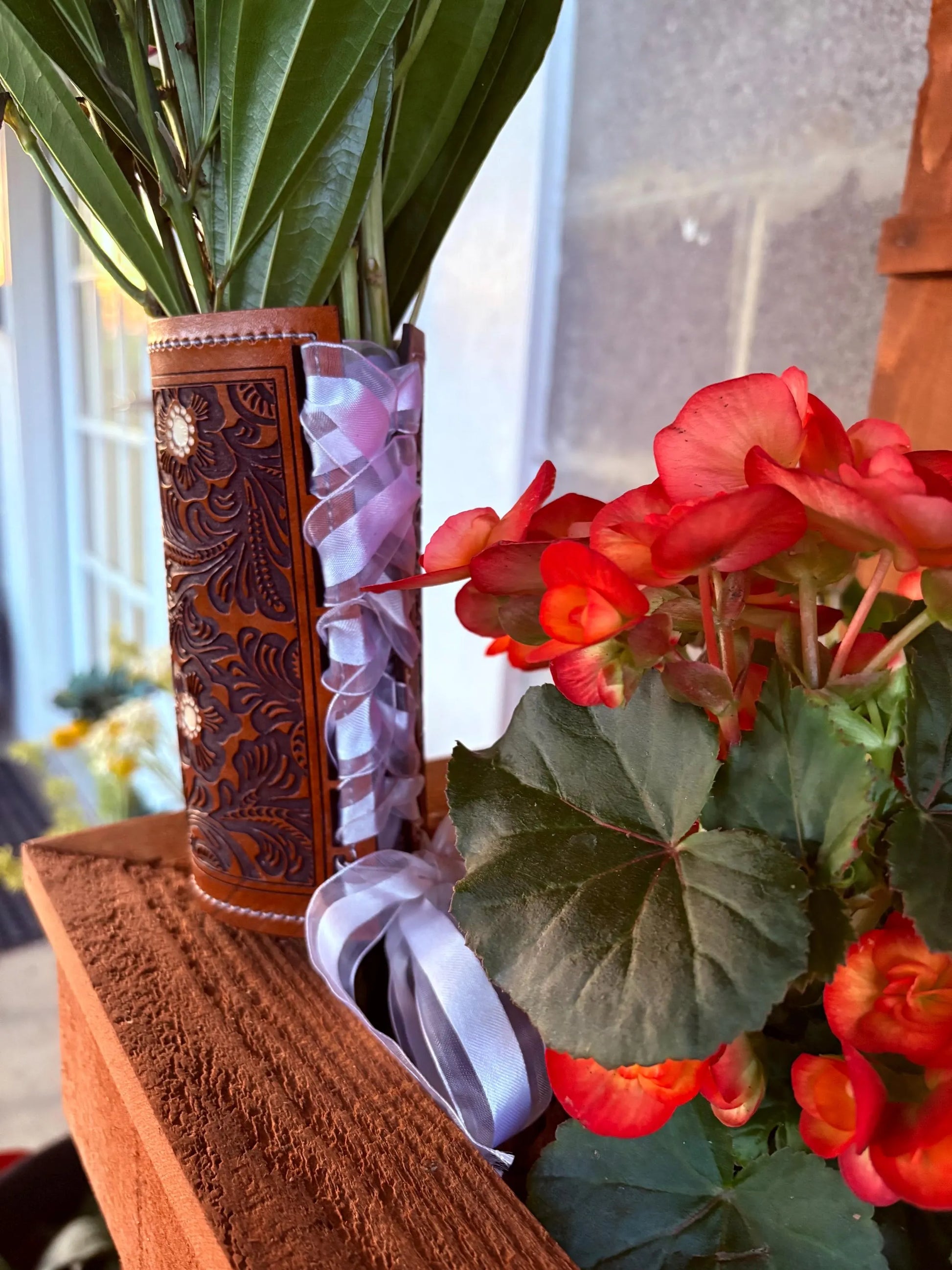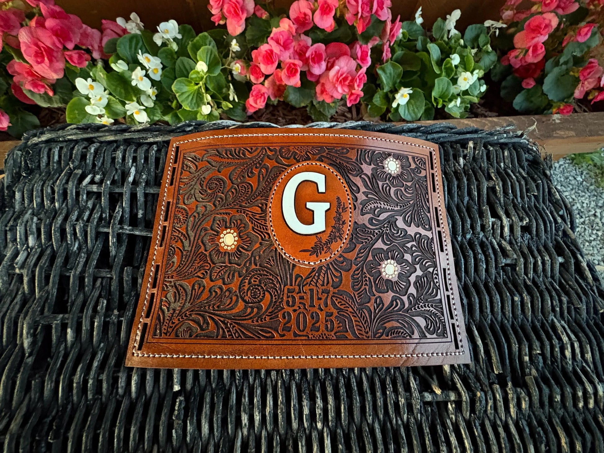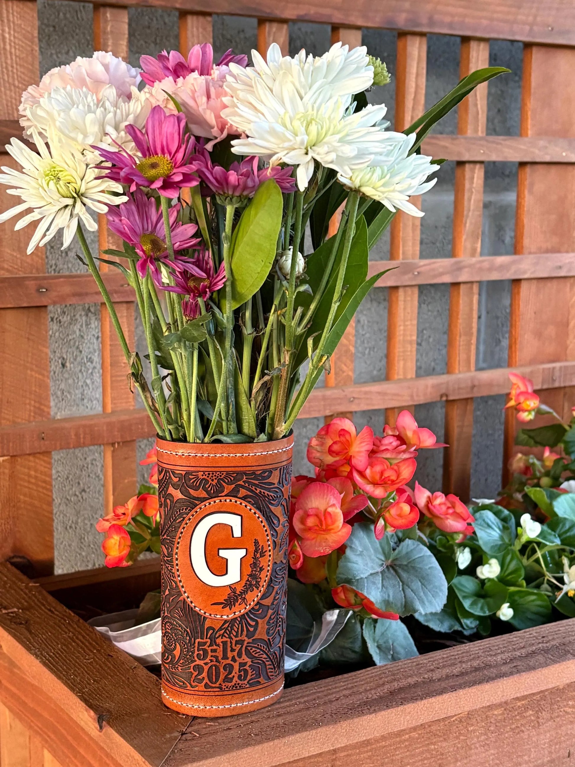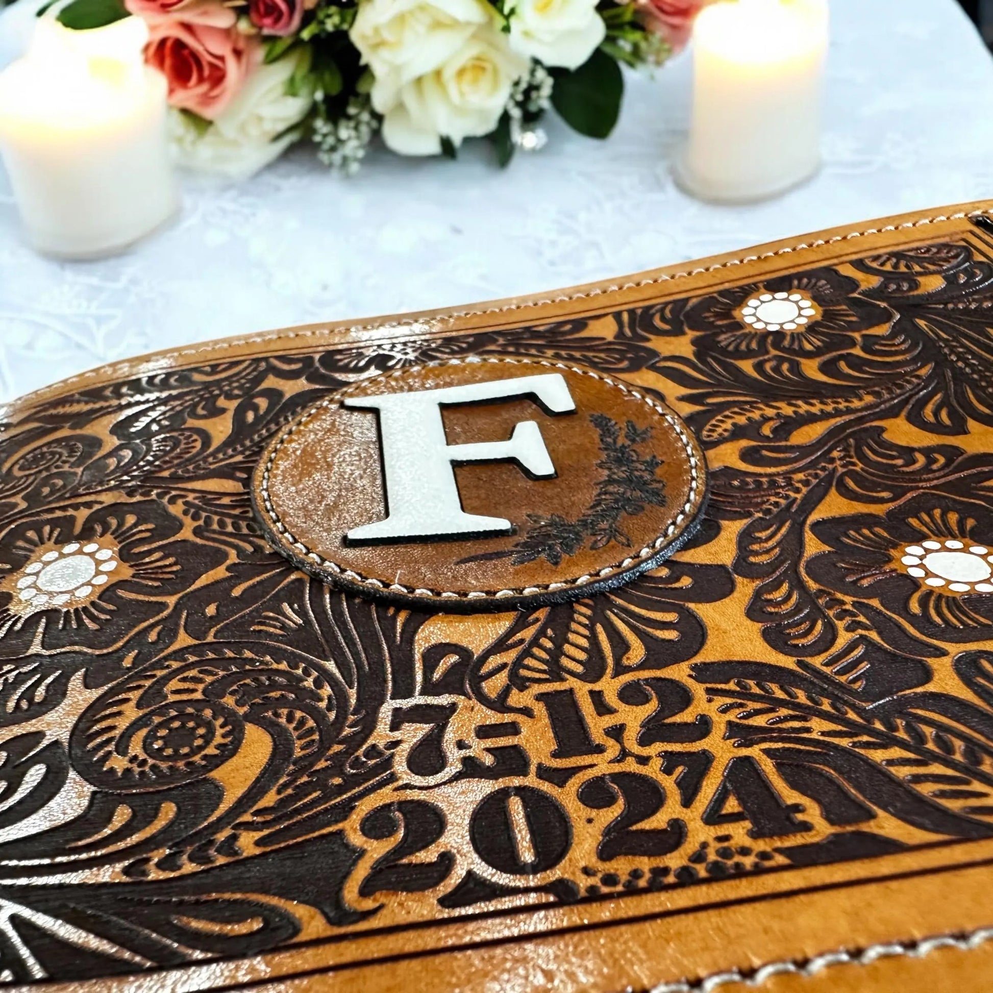 Make your day even more special with your custom made genuine leather bouquet wrap.
