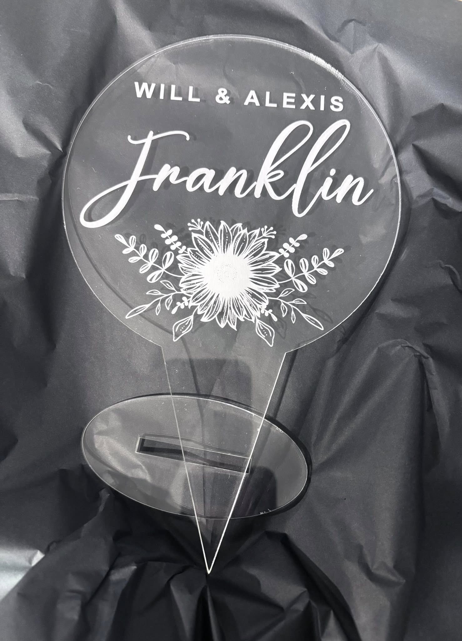 Custom Wedding Cake Topper - Personalized Topper For Wedding - Acrylic Engraved - Floral Designs - Rustic Design - Sunflower Cake Topper